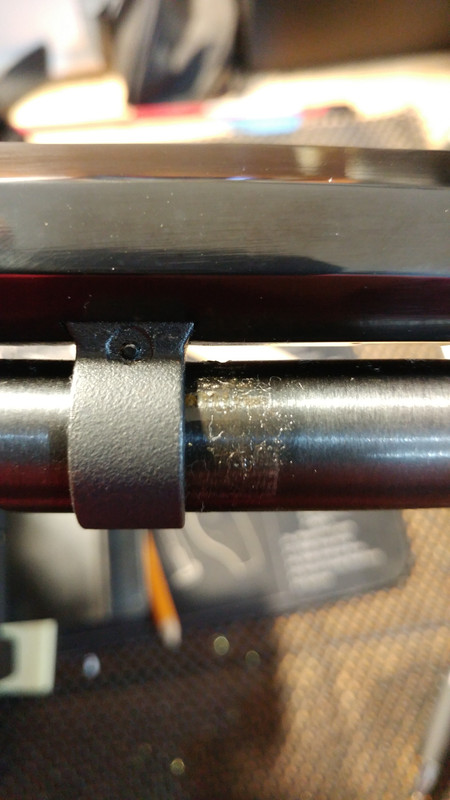 I brought my new to me Henry to the range today with a box of factory 240 gr rounds and some home rolled rounds for load development. After loading up the magazine tube with 10 factory rounds, I put them down range with no issues. When I went to reload, I noticed that the brass plunger was difficult to turn and even more difficult to remove. That is when I noticed that the magazine tube had moved forward about 7/16 of an inch. The roll pin that holds the magazine tube in place was still there and you can see the half moon shape in the magazine tube that the roll pin slides in to prevent the magazine tube from moving. Obviously it's not doing it's job.
