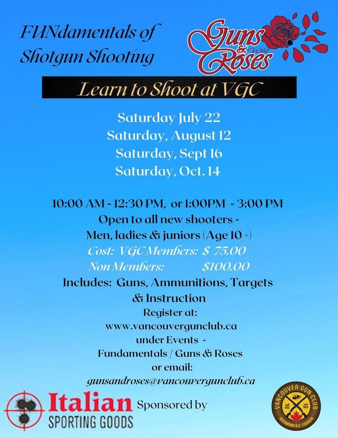 We now have a schedule for FUNdamentals of shotgun shooting and the all Ladies shoot Guns N Roses at Vancouver Gun Club in Richmond BC. For new shooters or shooters who wish to sharpen their skills. Set yourself in the right direction with a solid foundation in the basics of shotgun shooting. Positions sell out fast. See listings below.