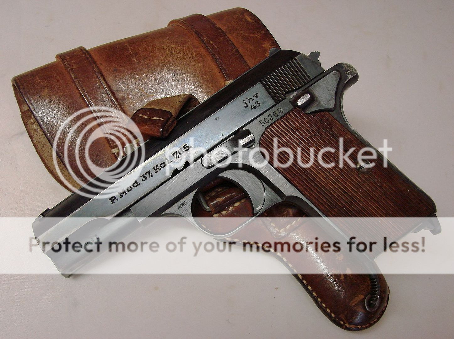 WaA938, Bearskin/Oakleaf with a 9 in the middle with 1942. A faint Mauser 7.65 ink stamp on the inside of the flap.