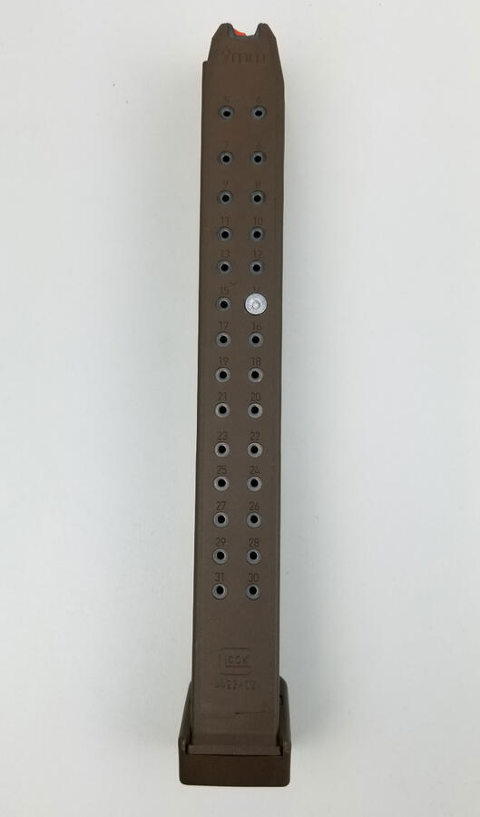 We rivet pinn Glock magazines. Here is a 33 Round Pinned. glock-33-FDE-Pinned.jpg