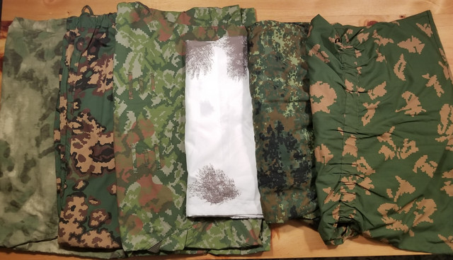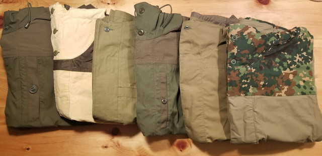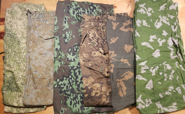 Ratnik 6Sh122 green side, 6Sh122 arid side, SSO/SPOSN Partizan M SS spring, SSO/SPOSN Partizan M SS fall, Afghan war era KZS, Afghan war era KLMK (both 85' dated)