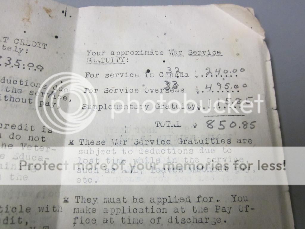 His dad served in WW2 but acquired this stuff from his uncle, I think. Also in the box were my friend's fathers discharge papers from 1945, his last will and testament from the Army, even a telegram sent to his parents advising them that their son had been wounded Sept.8, 1944 (wound/ shrapnel/right thigh) and was convalescent in England. My friend kept those, his dad served in the Cameron Highlanders apparently a machine gun outfit. I have other stuff from WW2 will post pics of.