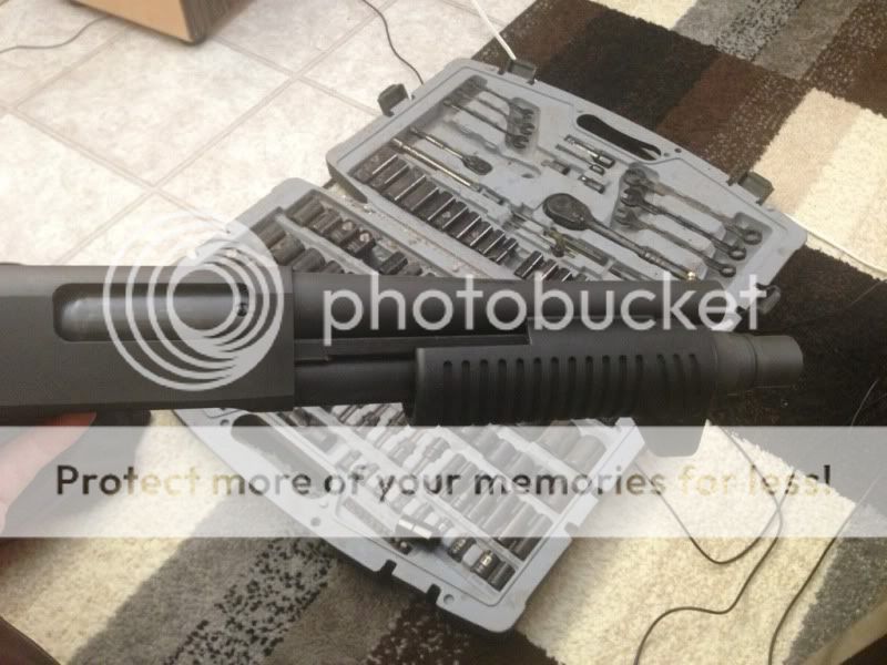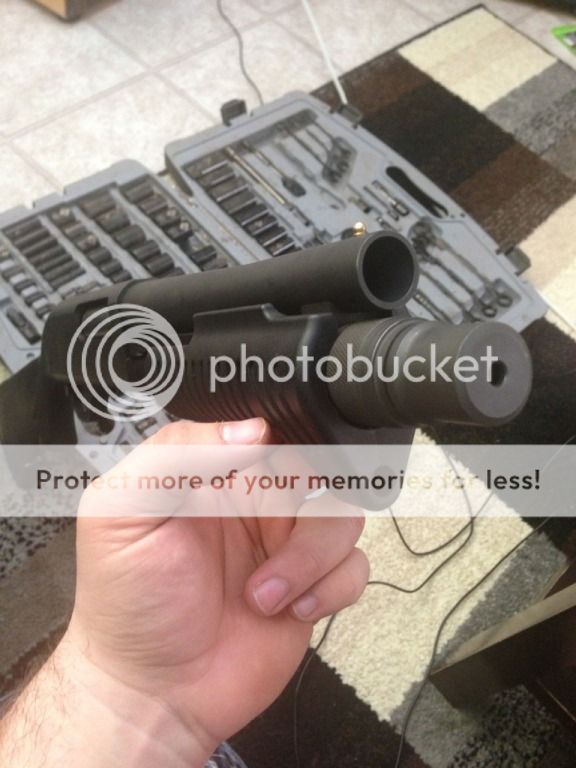 used the socket method, did alittle work with a 1/4" punch on the outside once the socket was in place to smooth everything out. threw the +1 on and she JUST holds 4! the springs works but i may cut an extra spring i had for another 12g i had laying around. heres some pics. what do you think guys, too ugly? i think it sort of adds a rhino like quality.. haha