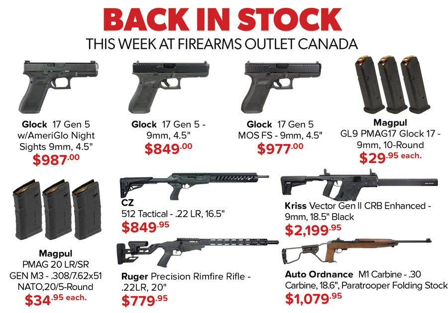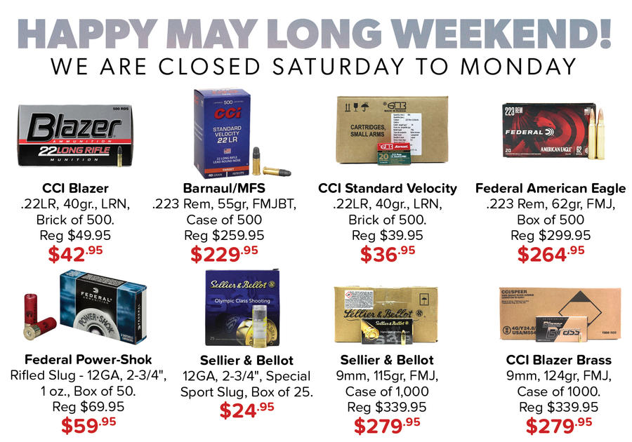 Firearms Outlet Canada CGN frequent flyer Business Member Rating - 100% 27 0 0 Location Ajax, ON May 15, 2020 #1 Check Out The Long Weekend Deals Current Specials HERE>>> Clearance Items HERE>>> Attachments SOCIAL-SET-UP-MAY15-1.jpg 111.4 KB · Views: 418 SOCIAL-SET-UP-MAY15-2.jpg 91.9 KB · Views: 413 SOCIAL-SET-UP-MAY15-3.jpg 97.1 KB · Views: 412