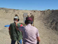 Heather B. of Boise, ID at the last position on Stage 6. (Heather works at an indoor range and gun shop in Boise called 'Impact Guns') This was where the shooter retrieved their own unloaded gun from the bag on the table, load it with the mags that were also in the bag, and engaged the remaining six targets from behind cover, two of which were about 40 yards out.