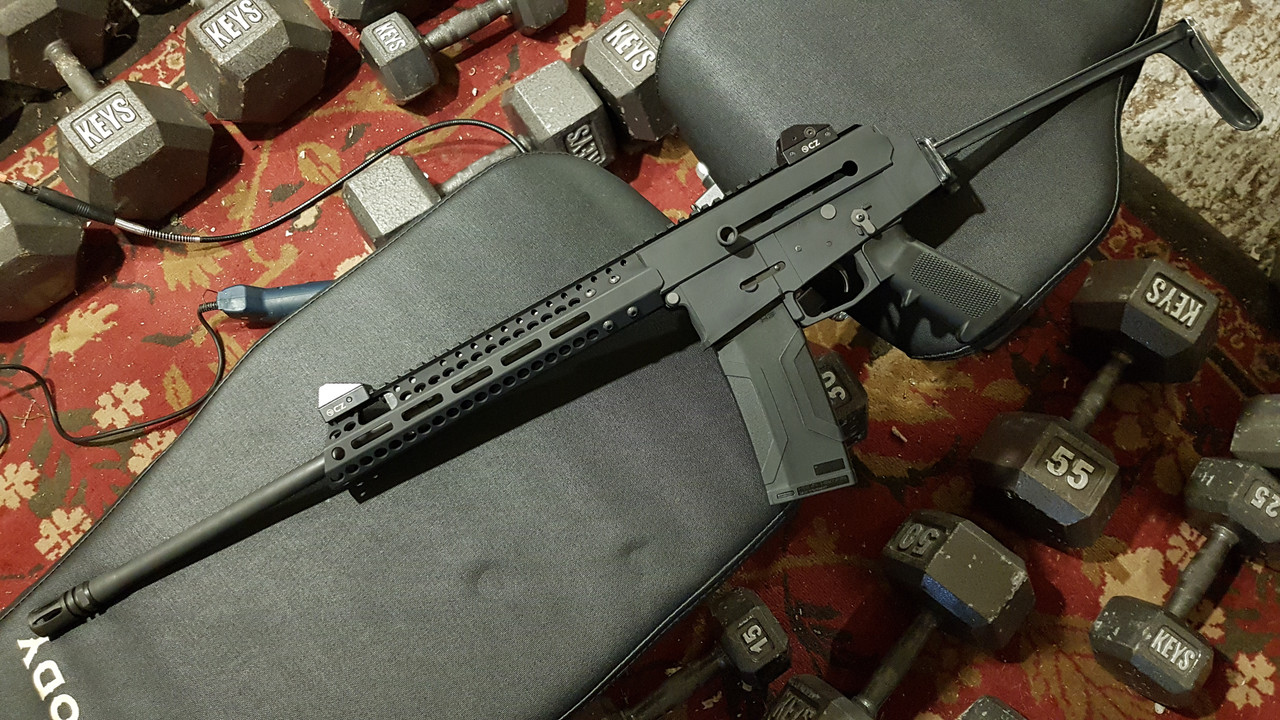 A short Galil stock or Vz stock were the other option I had considered. With that in mind, I pulled the stock, and created this.... thing :)