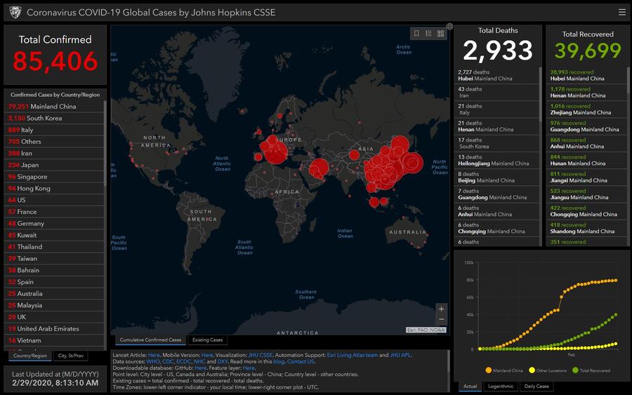 Researchers at Johns Hopkins University (JHU), Maryland, US, have created an online dashboard to track the spread of the virus across the globe. You can bookmark this map to see live coronavirus updates.