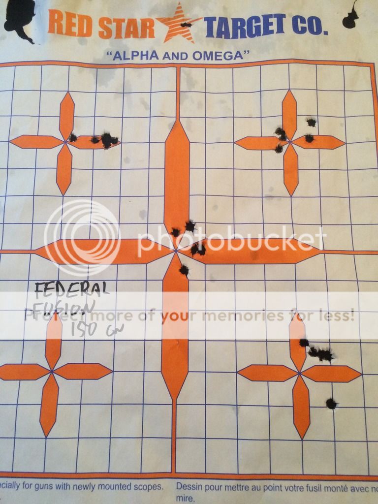 Looks like it's shooting similar to my Adirondack with the Fusion, any chance you know the order of how the rounds hit paper? Mine puts the first two touching, or barely apart, and they start stepping out from there even if a few mins are taken to shoot the group. It looks to me like yours likely acts the same. This was politely questioned when I posted it in another thread, but my Mountain Ascent does the same, the Talkeetna does not but it's a heavier barrel. Like you I have other rifles to shoot beside it with heavier barrels that don't act the same. I don't consider this a flaw at all, with the weight of the barrel makes sense and I'll gladly accept two to three tight rounds before it walks for the shaved pounds.