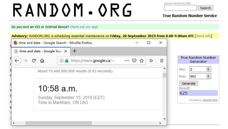 Time to draw: 10pm Saturday night, 14th/Sept/2019.