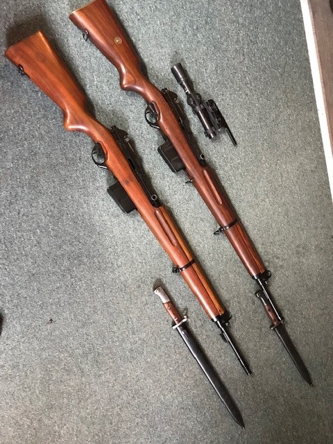 FN 49 Egyptian contract, 7.92 mm. This is not a factory sniper but is the correct three band rifle as used for sniper rifles, receiver is machined for scope base. Includes the Meopta scope (Egyptian marked) rings and bases. Correctly marked Egyptian bayonet. $2,750.00 Reduced $2,500.00