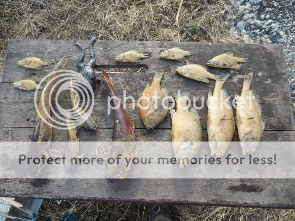 I live in south Ontario. There is a river by my house and when the ice melted there was tons of dead fish. Carp, bowfin, bass, crappie and catfish. I couldn't believe how many their were. When I would go fishing I would through some of the small fish I caught in my pond. They would spawn in my pond and they lived through all the winters up in till last years. Here's a picture of some of the dead fish I pulled up after the ice melted: