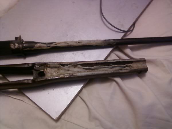 Yea I thaught it was body filler at first to. If I take it apart again, the stuff on the barrel will be on the stock, and stuff on the stock will be on different part of barrell, it isnt solid what so ever. So I guess tomorrow project is to clean it off.