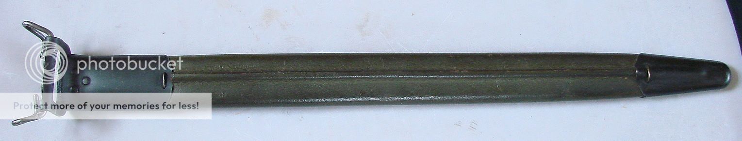 That blade may be stained but it hasn't been sharpened. The scabbard looks good as well. Those bayonets just don't come by the bin full like they used to for $5 anymore.