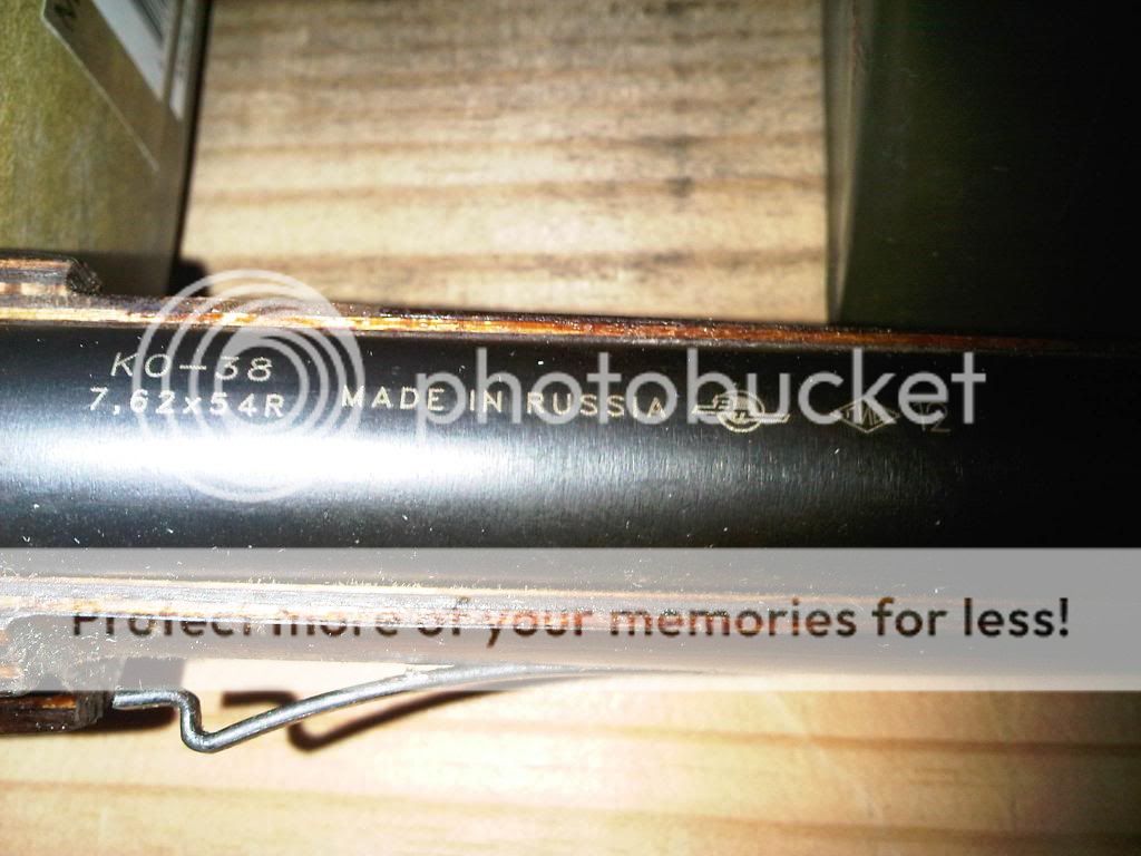 Its a 1941 Izzy with laminate M44 stock, has a few little rust spots along one side of the barrel, butt plate and a few other minor spots. Haven't cleaned or slugged the barrel yet, but did find some interesting writing under the front handguard. Its not Russian, but sure looks familiar and peculiar at the same time.