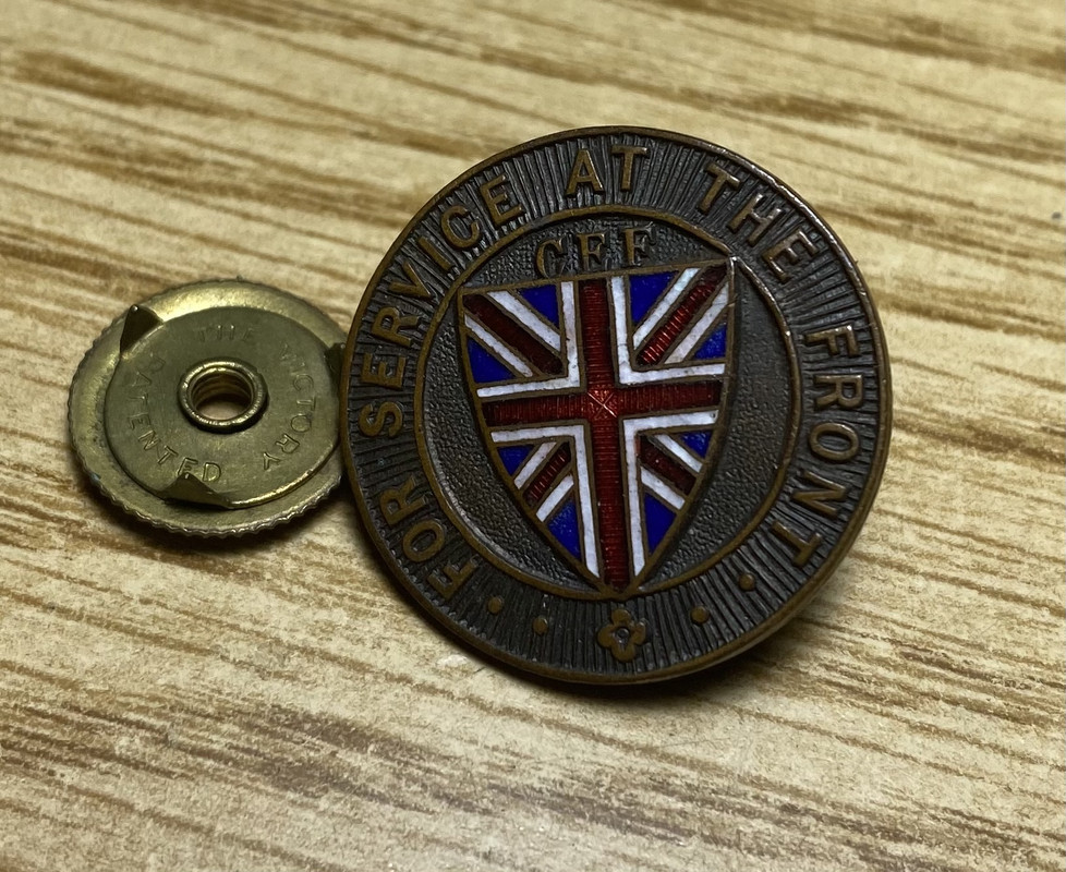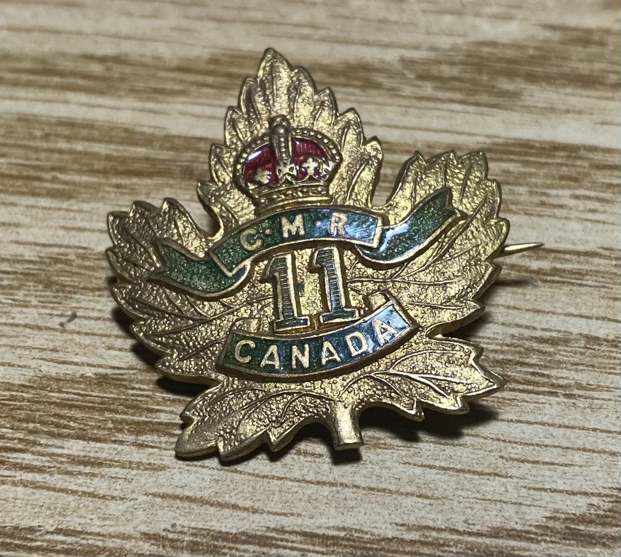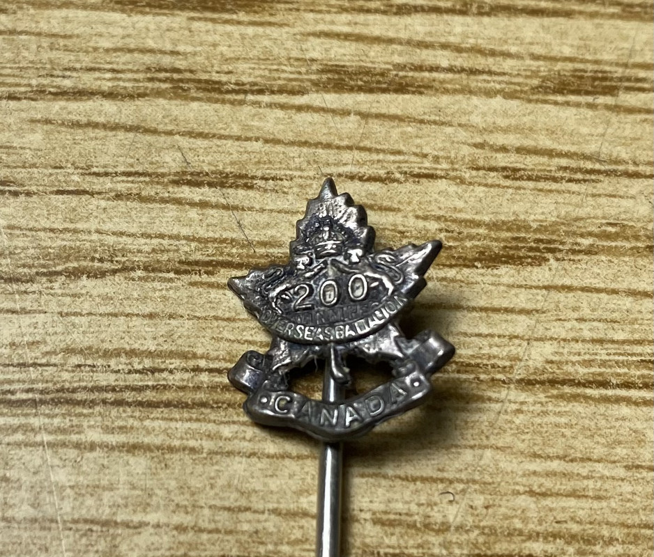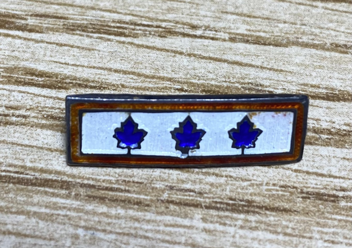 Great. Thanks for the info! Do you know where the 11th CMR hailed from? The Observer wing is 2nd WW I assume. The three little leaves is odd. The lapel pin says 200 overseas battalion Winnipeg, which is barely visible. Back of little three leaf pin. The bar, I believe is WW1 with Victory. The “Arras” is a souvenir of the battle and caves, apparently.