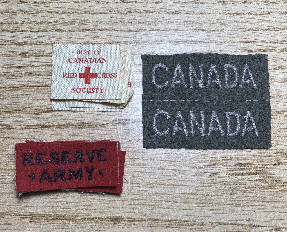 Thanks again for the information. I think the the three leaf pin brings the reality of war to a personal level. The Red Cross stickers are more like a piece of cloth, maybe linen or cotton. Cheers
