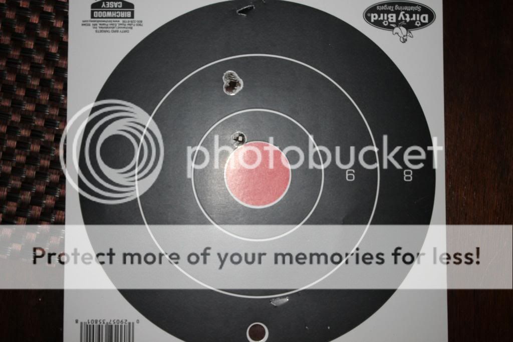 Finally @ 100 meters, thru 7-30 piece of glass. 3 1/8 inch, high and a litttle left of my point of aim.