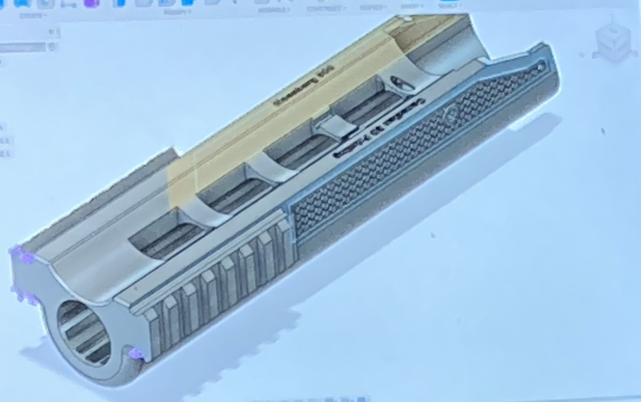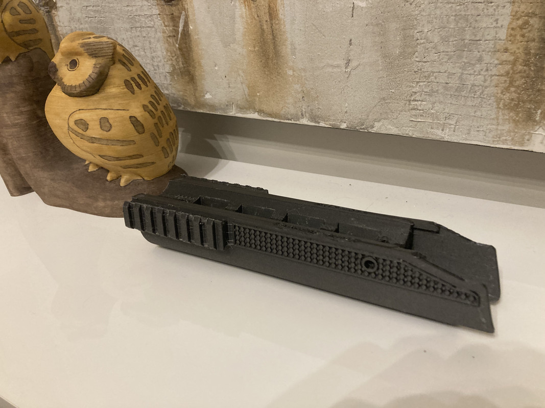 Testing complete, had to make some changes to the fore stock. After testing with PLA+, PLA-CF, and PETG I decided to go with PLA-CF. The stuff is amazing, prints great and the CArbon Fibers help with resisting wear to the internal fins. Just some live fire testing next and if all is good, look for a EE ad up in the future. If you are interested in one for yourself, PM me. Price should be about $100 plus ship. Will come with a removable aluminum 13 slot m-lok picatinny rail on bottom.