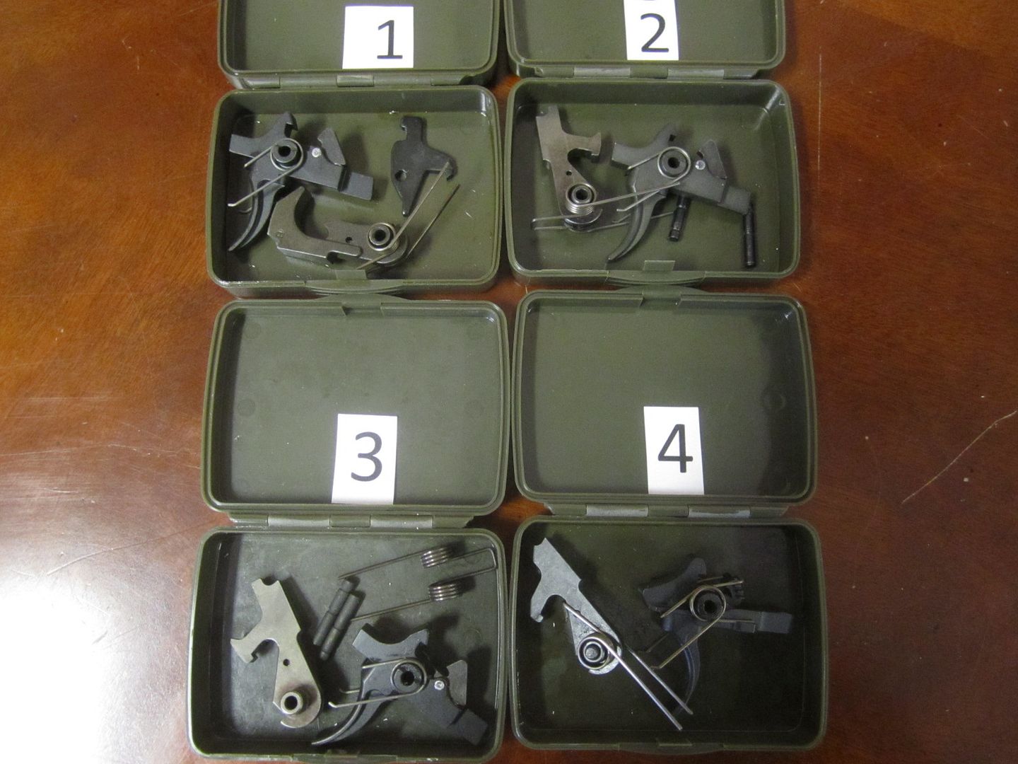 Armalite AR trigger assembles, all used, as shown $75 each. # 1 NM with standard hammer. # 2 & 3 NM with NM hammer. # 4 NM with three weight setting and NM hammer.