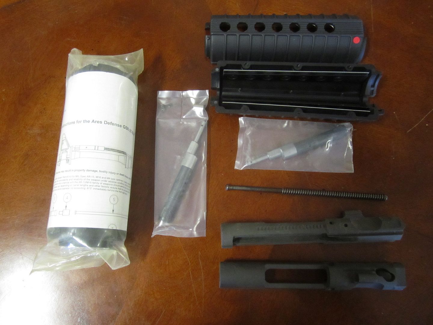Ares Defence GSR-35 Black Lightening Gas piston retrofit kit. One complete NIB, one almost complete and a third bolt body Everything for $375.00