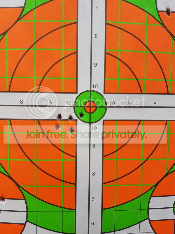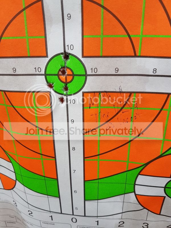 23gr of powder was our first try and it ended up shooting the best for reloads. As soon as we tried 23.2gr of powder, groupings doubled up in sizes. Same results for 23.4gr. We also had a couple of rounds that didn't feed properly and for now I am blaming this on the reloads.