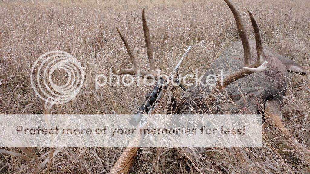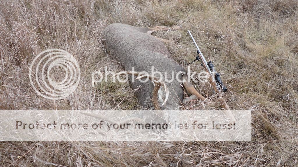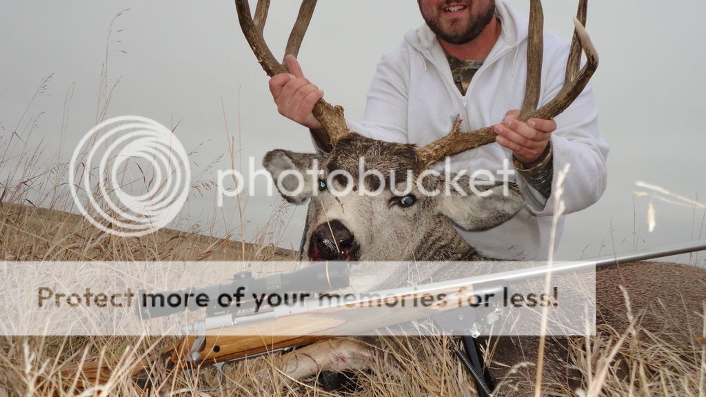 Got my Mulie today after a bit of a foot pursuit through the hills, he got a length of space on me and disappeared over a hill, I made my way to the top and managed to spot him, he thought he would be safe at 330yards in some very light brush, he was mistaken, I managed to line up a double lung hit and he went over a hill after a hit, made it about 5 steps, but I lost sight of him and thought he made it a lot farther then he did and spent a little time looking for him only to find him where I left him.