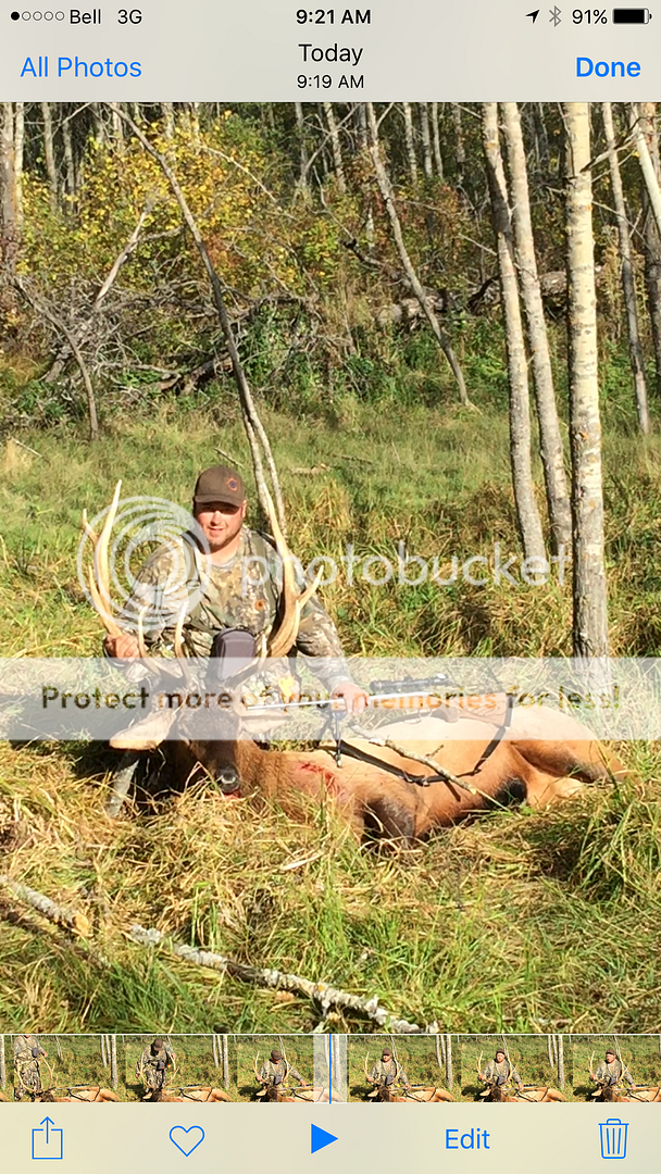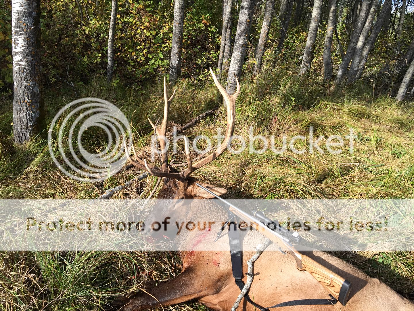 I hiked in a few miles. Was bugling all the way in, high pitched and every 15 mins or so. The would switch up to a cow call to answer after moving another 200 or so yards. I called this guy in to 7 yard and he came in so hot I had to stand and say stop. He didn't notice me until I stood up. Used ("the lowly") 7-08 to take him down. A Barnes LRX 145 at 2710fps was more then adequate to put a stop to it. I didn't realize how well he was hit, due to the speed of the action, I made a follow up shot as well. The bullet performance was perfect, the trip although quick, was a once in a lifetime situation(or so I'm told) and am very happy with my first elk.