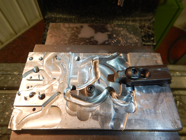 Ive been using locating fixtures as much as possible. here you can see ive already made several other small parts using this same aluminum block...