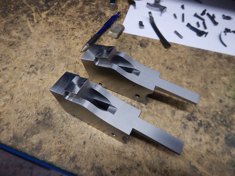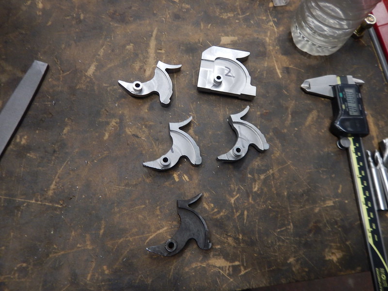 Working on the hammers... they're 4340 and for whatever reason this chunk of material was abnormaly gross to work with. I ended up making another set but this gives the gist of it...