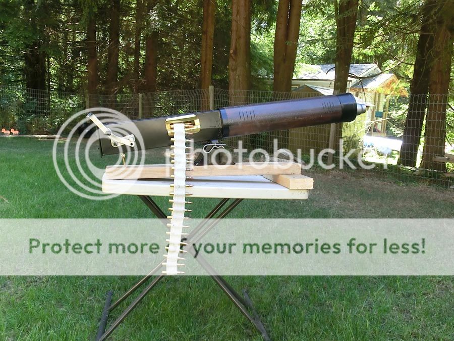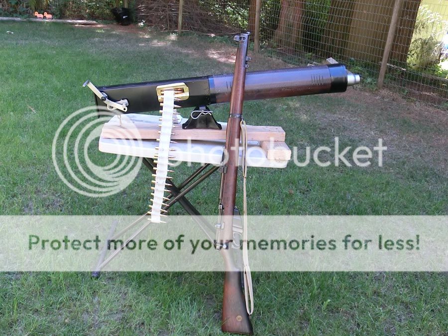 I met a guy who is rebuilding a WW1 Sopwith Pup replica for display. After a bit of a chat, I found he did not have a gun to go with it. So, for the sake of my hobby I decided to build a replica for him. It was made in about 25 hrs out of odds and ends I had lying around. Basic wood structure clad in sheet metal. Size is pretty close to spec. The cocking-charging handle was from door parts and the ammo belt was canvas strips I glued together. For the purists, the ammo is spent 30-06. I know, I know. It should be 303 but I hoard that stuff. And I had a lot of 308 bullets that I rarely use to complete the dummies.