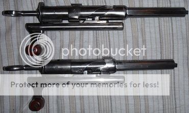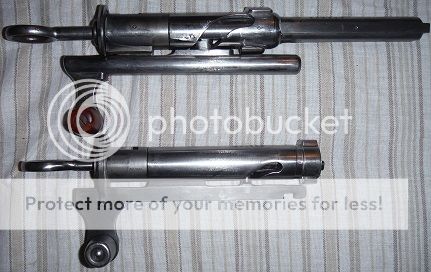 The difference between the 1896 bolt and the K31 bolt. Note how much more compact the K31 bolt is (which allowed much more barrel than the K11 and a longer sight radius).