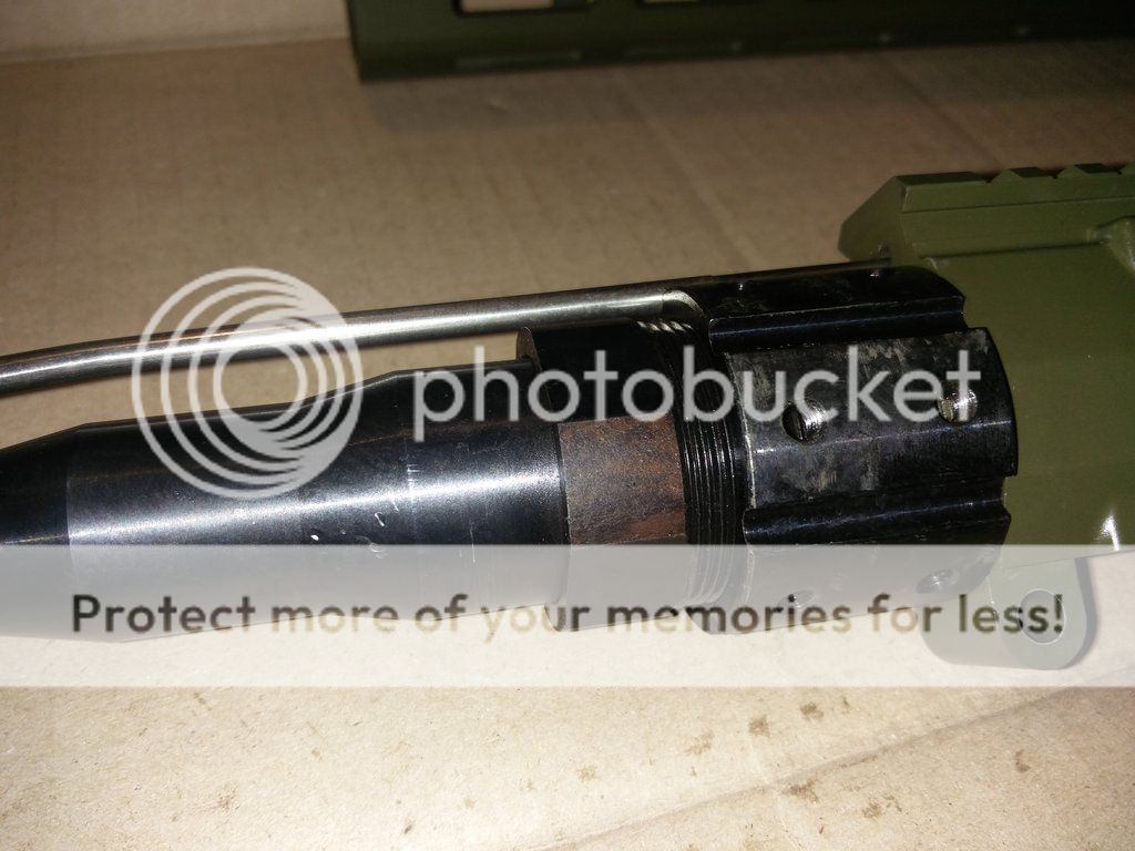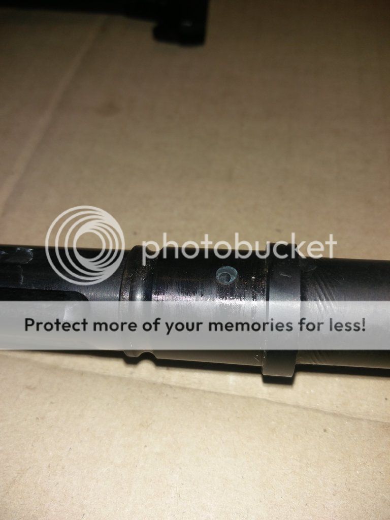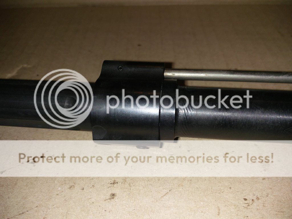 Ok guys, now like i said, i was unable to take the barrel off. So here are some pictures of the barrel and nut. Its too bad that i was unable to take off the barrel nut because as everyone wants to know what its compatible with. As you can see the gas block picture there is definitely some chatter marks on the barrel it looks like this was done before the nitrite process which for me is not a big deal. This is something i'm not going to worry about because if it turns out we can swap barrels, i will most likely swap it out with a target medium barrel. The last picture is when i took off the gas block, you can see by the gas residue the gas block hole is much bigger than the port, this will allow better flow and probably better reliability.