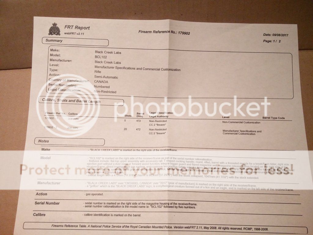When i opened her up i was pleasantly surprised to see her wrapped in a cloth hunting bag for protection. Also included in the box is the IMI 20rnd Mag , Sticker of a forum not to be named (Not pictured) and the RCMP FRT Report. Thanks for the FRT Printout i'm going to be making copies of this for all my bags because....you never know. The Mag seems to be very good quality and i will probably be purchasing a lot more of these if everything turns out to work good.