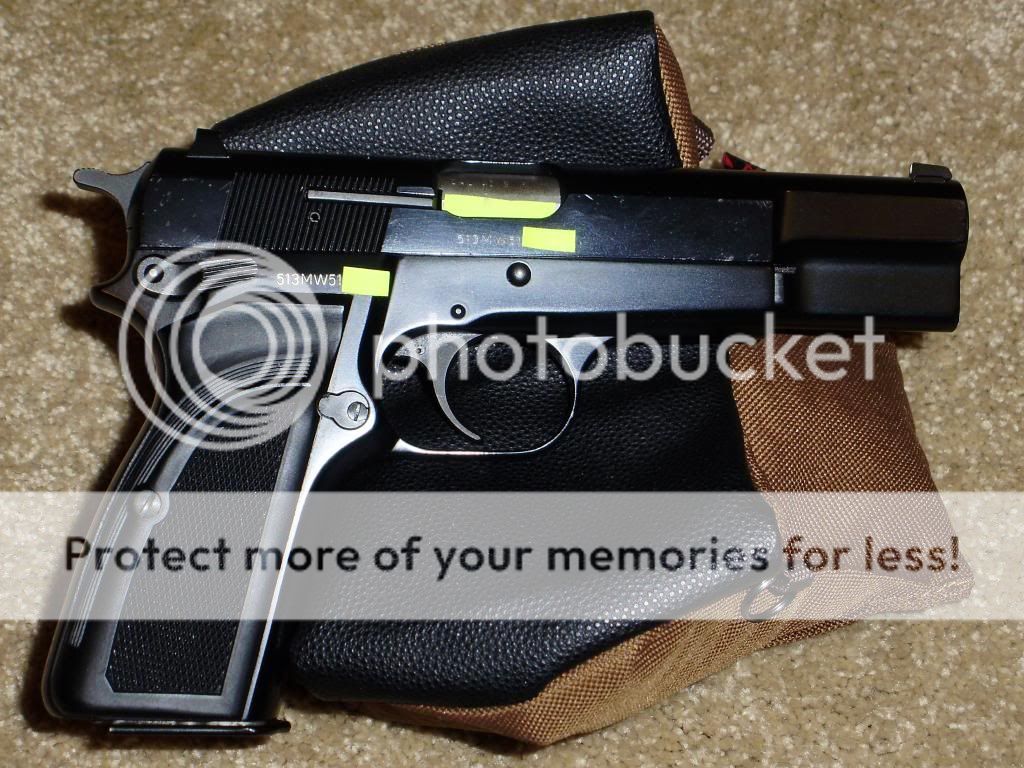 I got a nice package in the mail today....Browning Hi-Power in 40S&W. It's actually even nicer than described or how it looks in the photos. Those little white marks on the slide aren't visable at all in natural light. My first EE experience has been a good one. Can't wait to get it to the range. It fells great in my hand.