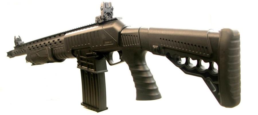 Our new Tacti-cool shotgun with a magazine. Practical, cool looking and fun to shoot. The 14-inch barrel makes it easy to store for your hunting adventure or to have it as a camp gun. Also, you can take on the hike or ATV ride as it is only 36-inch long.No chokes. Great pump action mag fed shotgun for the great price. Spring assisted. Non-Restricted