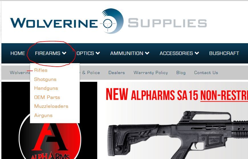 We have been making some good strides with our website over the past little while here and another has become active on the website. The navigation on the home page has changed and you no longer have to specify what type of firearms you are searching for! When looking for a rifle, all you have to select if the top banner ( FIREARMS ) and then select the category of rifles. No longer do you have to select the sub category of *Hunting Rifles / Tactical Rifles* they will all be displayed on the page. You can still narrow your search by these fields after everything has been displayed but it is not a mandatory field to be selected! Excuse my rough pictures below, ( not much for Microsoft Paint ) this should give you a quick example but be sure to try it out yourself! Please excuse the fact that their are revolvers in with our rifles, Web Team will be on it at some point!