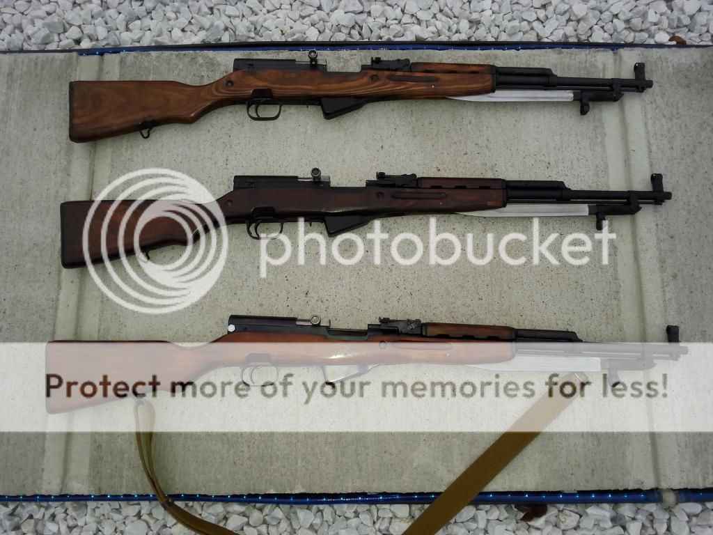 Got a couple new SKS's yesterday, for $180 each at CT. The top one is a '54 Izzy, the middle one is a '51 Tula and the bottom one with the bolt through it I've had for a while, it doesn't have a stamp on the cover so I don't know what year it is.