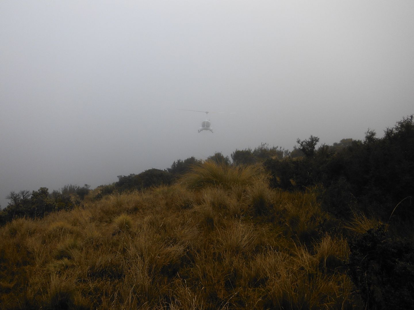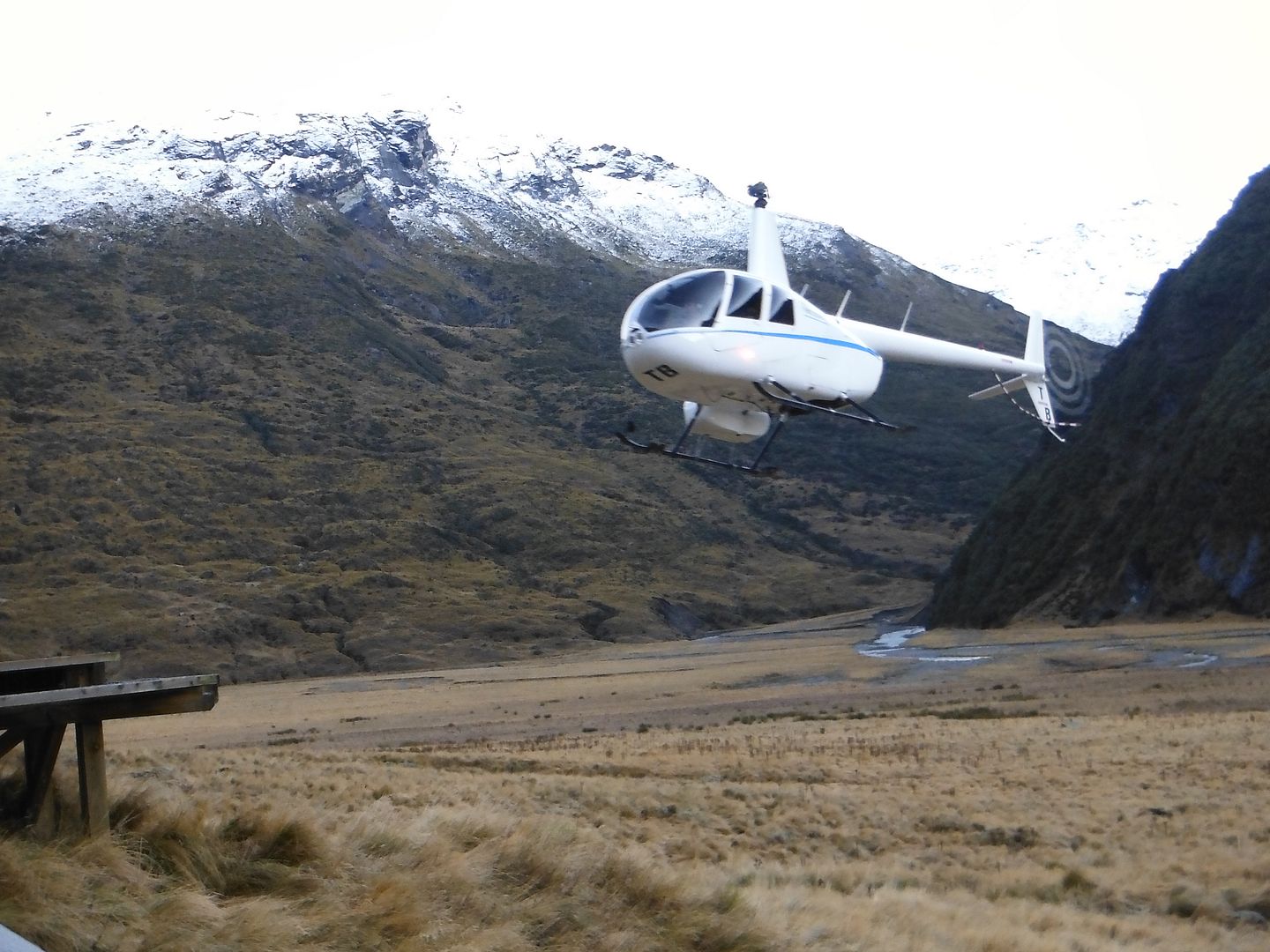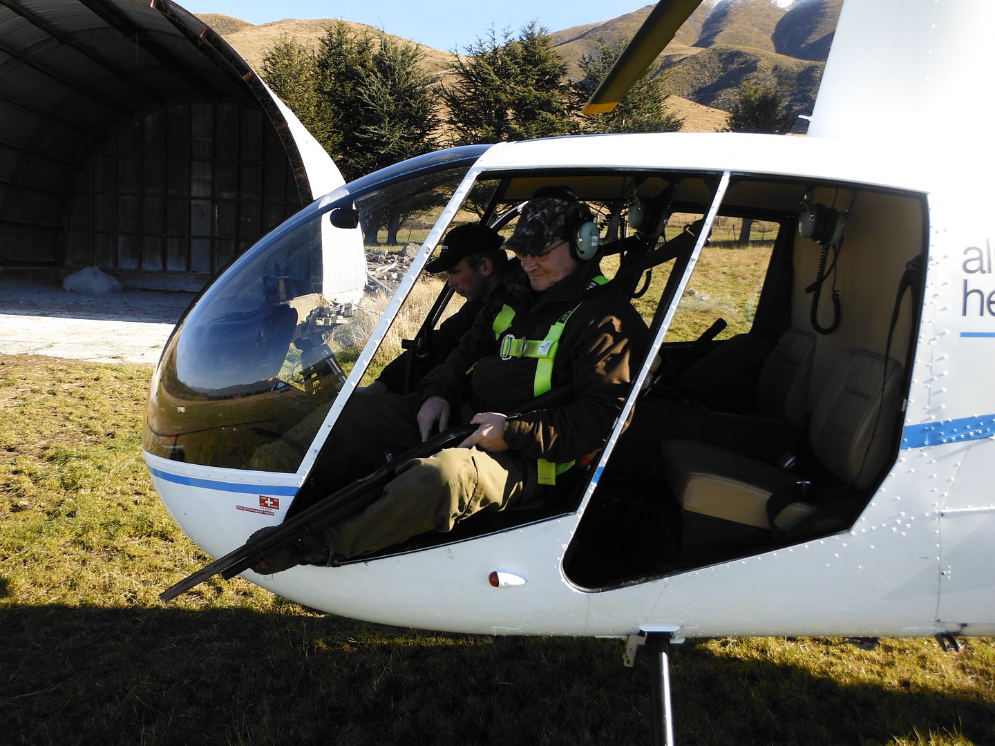 There were two choppers we flew in. All my flights were in a Robinson 44 apart from my last flight culling goats where we used the larger more powerful Squirrel she was a 7 seater, 3 in front and 4 in back. The 44 was a 2+2. They operate two Squirrels (2.3 million each) and I think it was four 44 and one smaller chopper that I did not see. I believe all of them could be set up with cargo pods on one or both skids, I also saw spray booms, fertilizer and seed hoppers so they could be changed to "Ag work" very quickly. The cargo pods were great for stowing all our bags when moving to camps or retrieving Tahr and Chamois from the mountains.