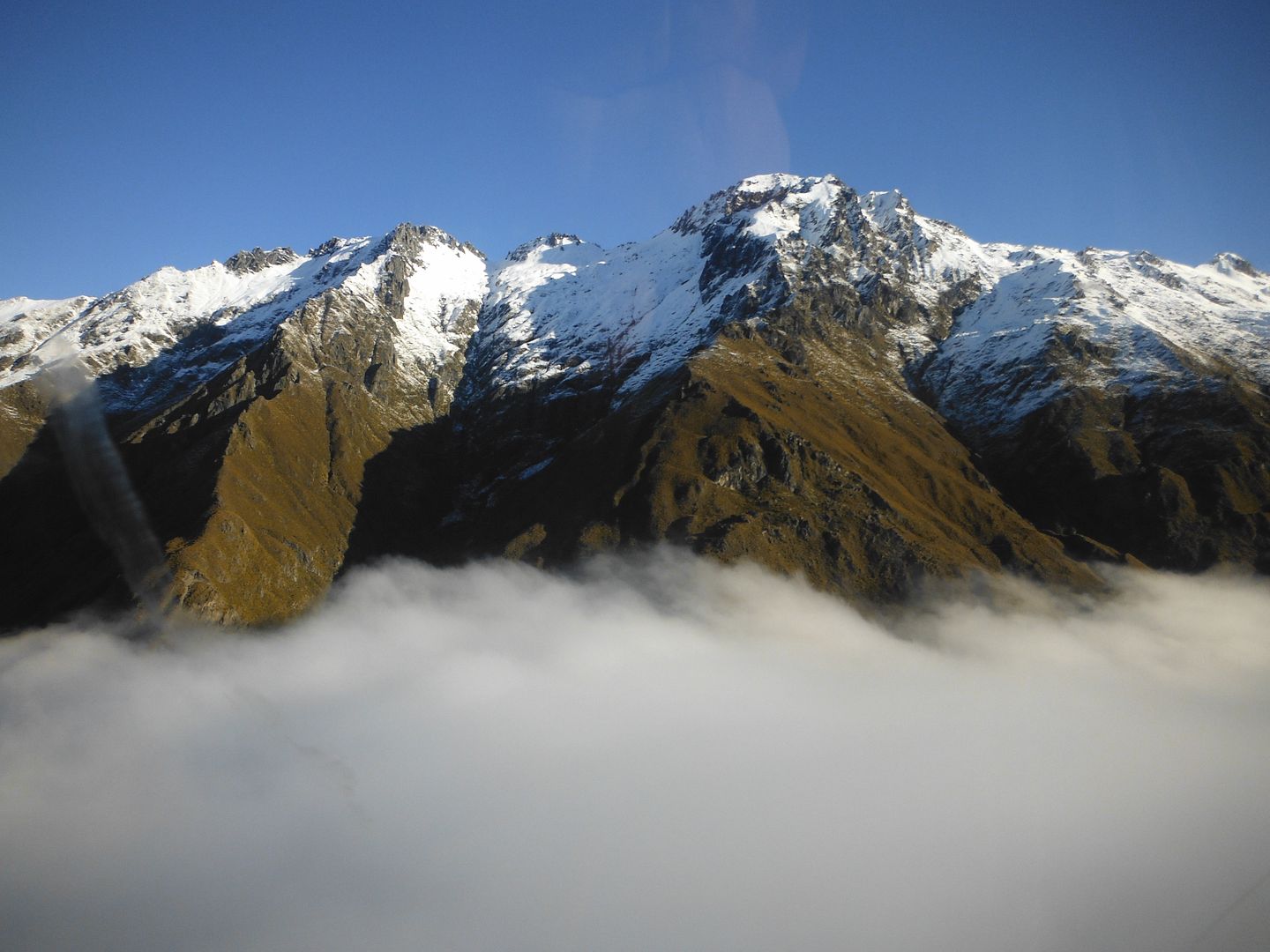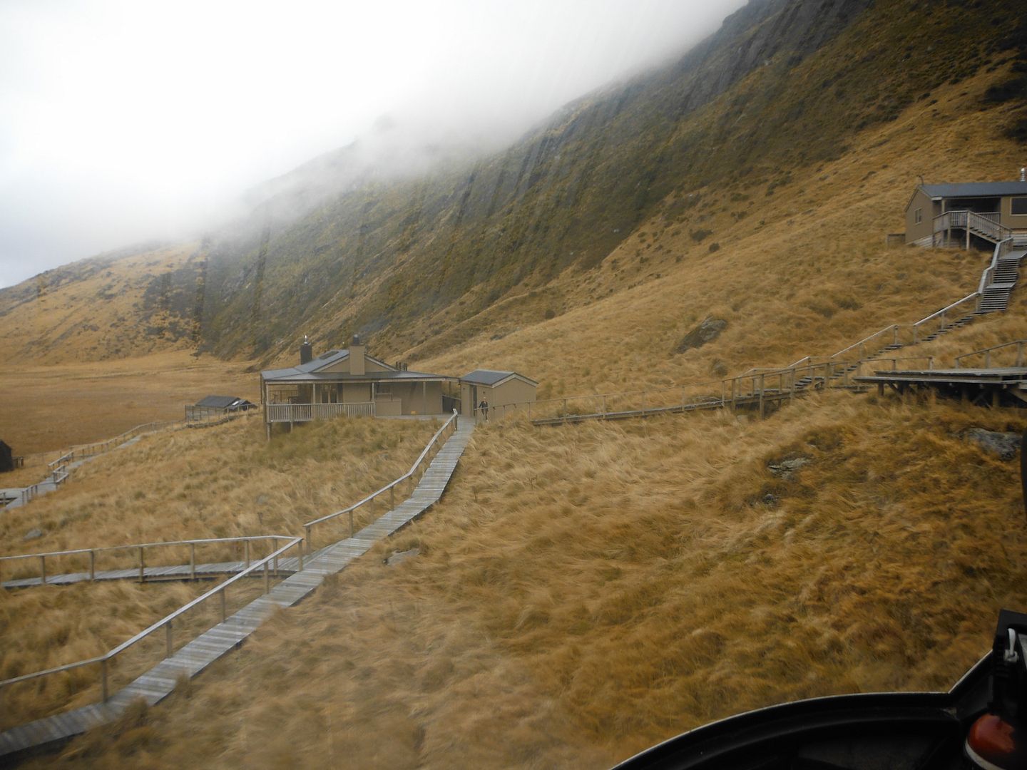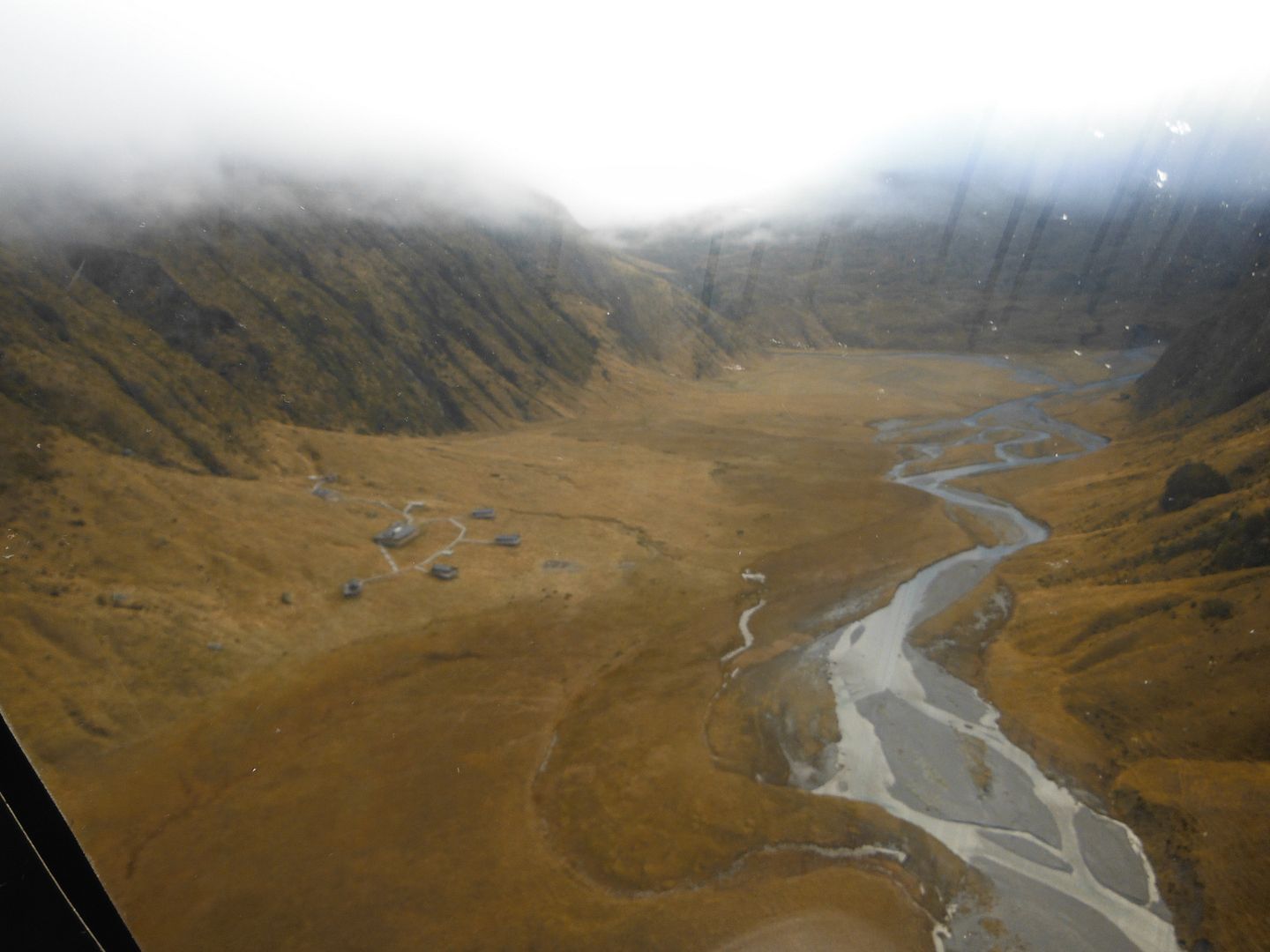 Tim found a small break in the clouds and brought us expertly down below them, my first sight of Minaret Station.
