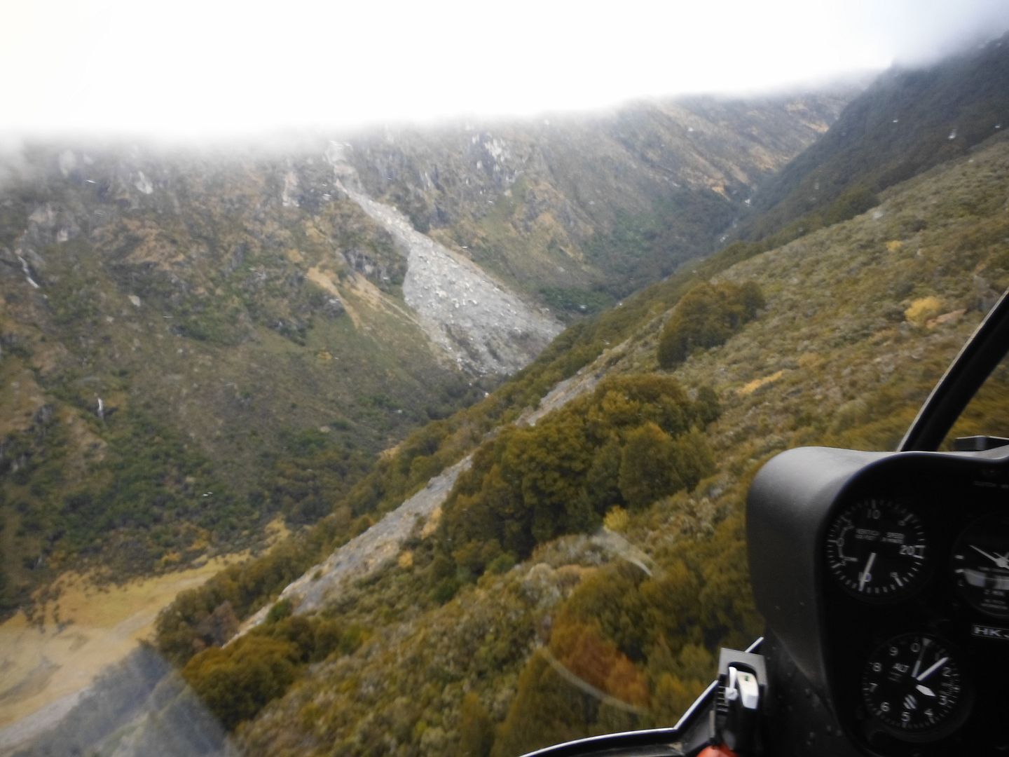 Flying up the valley under low cloud. We spotting more Chamois so Tim set us down on a “flat spot” and left us.