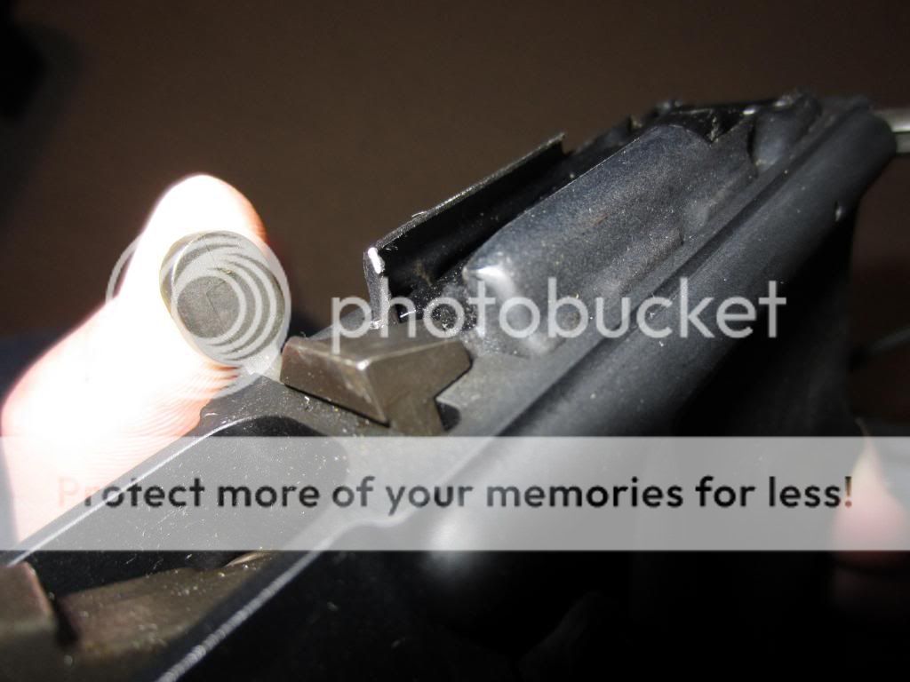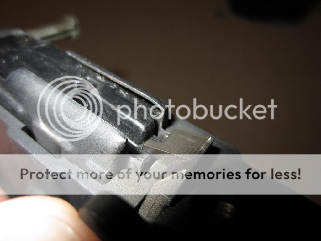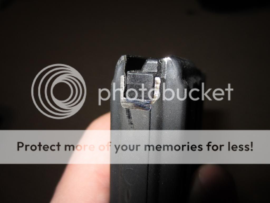 Here's a picture of the mag inserted without the modification, the metal pushes upwards on the slide release not allowing it to be depressed.