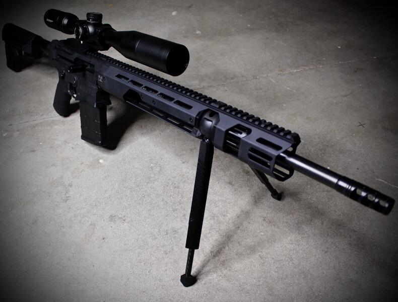 Pictured is an MRA Maverick 20” 308 with a Vortex Diamondback Tactical 4-16x44 and a 17” blk lbl bipod handguard!