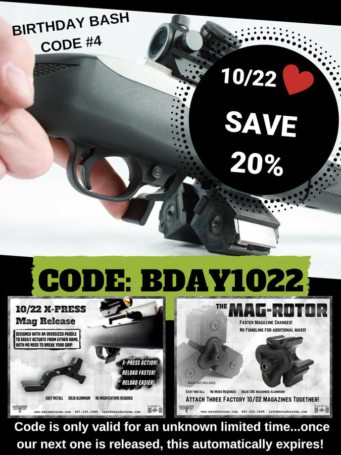 The 10/22 code is still active, but based on the orders so far, we may be facing a “while in stock” disclaimer! Thank you for your orders, and if you’re thinking of taking advantage of this deal, do it fast! We’re not sure what will come first - a new code replacing this one, or the out of stock message!