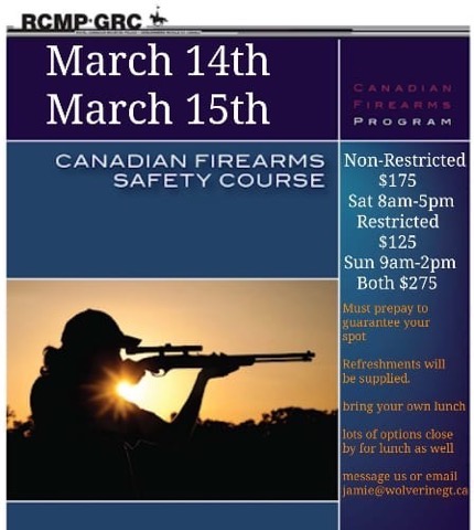 W Wolverine Guns and Tackle CGN Ultra frequent flyer Location Red Deer, Alberta Feb 21, 2020 #2 March 14th - non restricted March 15th - restricted You must sign up in advance. Limited seating available.