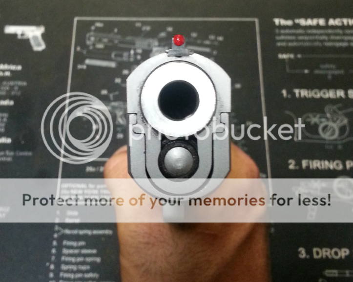 Hahaha. This is the one I was talking about on the IPSC forum. I always shoot with both eyes open but since Eric G shoots anything past 15m with one eye closed I thought I would try. Feeling really comfortable with my grip and trigger control I decided to try one eye shut and shot this group.