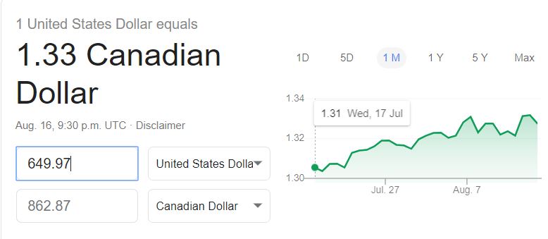 This is plus GST and Canadian shipping, please keep in mind credit card charges will vary but this will give you a very good idea.