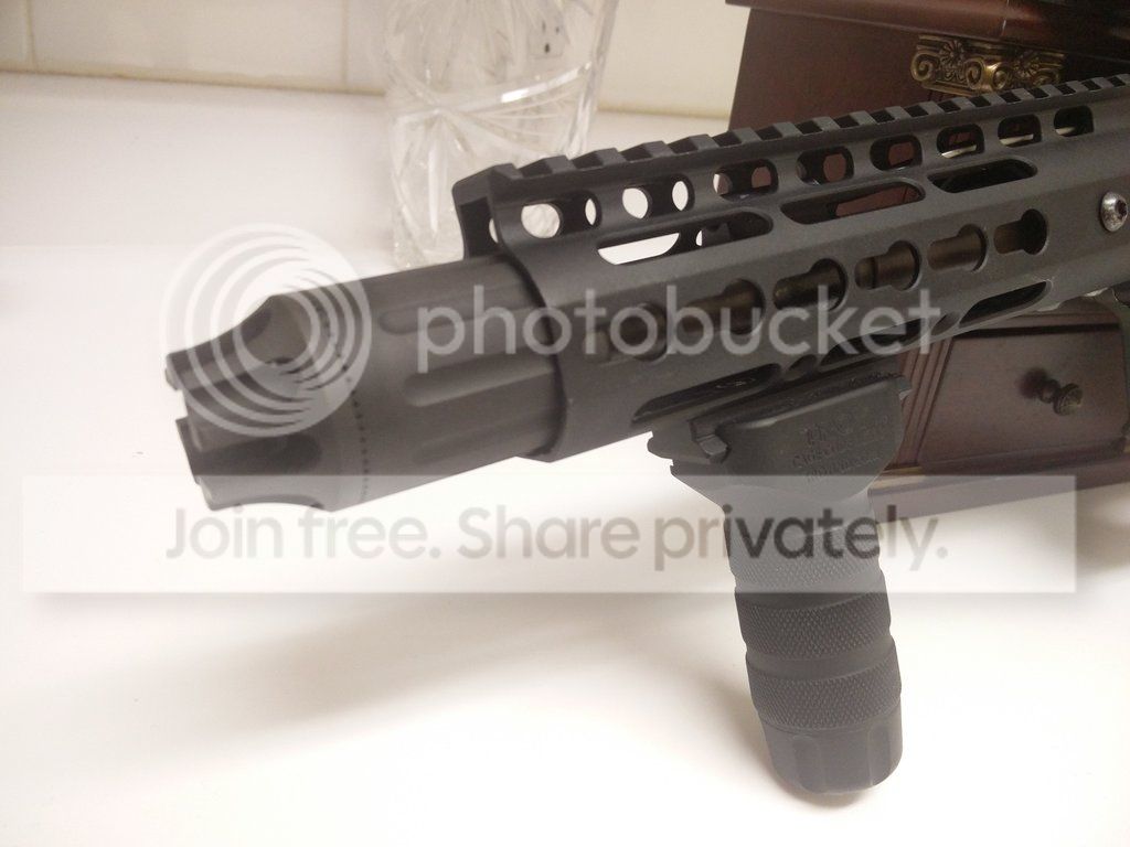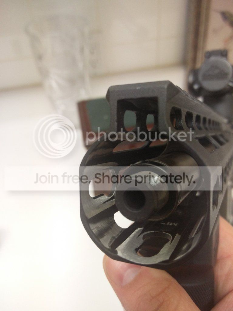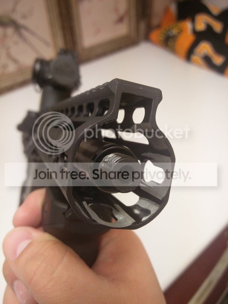 Both have the thread slightly under the rail, same issue he will have. I did the same research on my 7.5" build, to make sure my Fernfrans CRD would fit under my rail. about 1/4" of it had to fit inside the rail