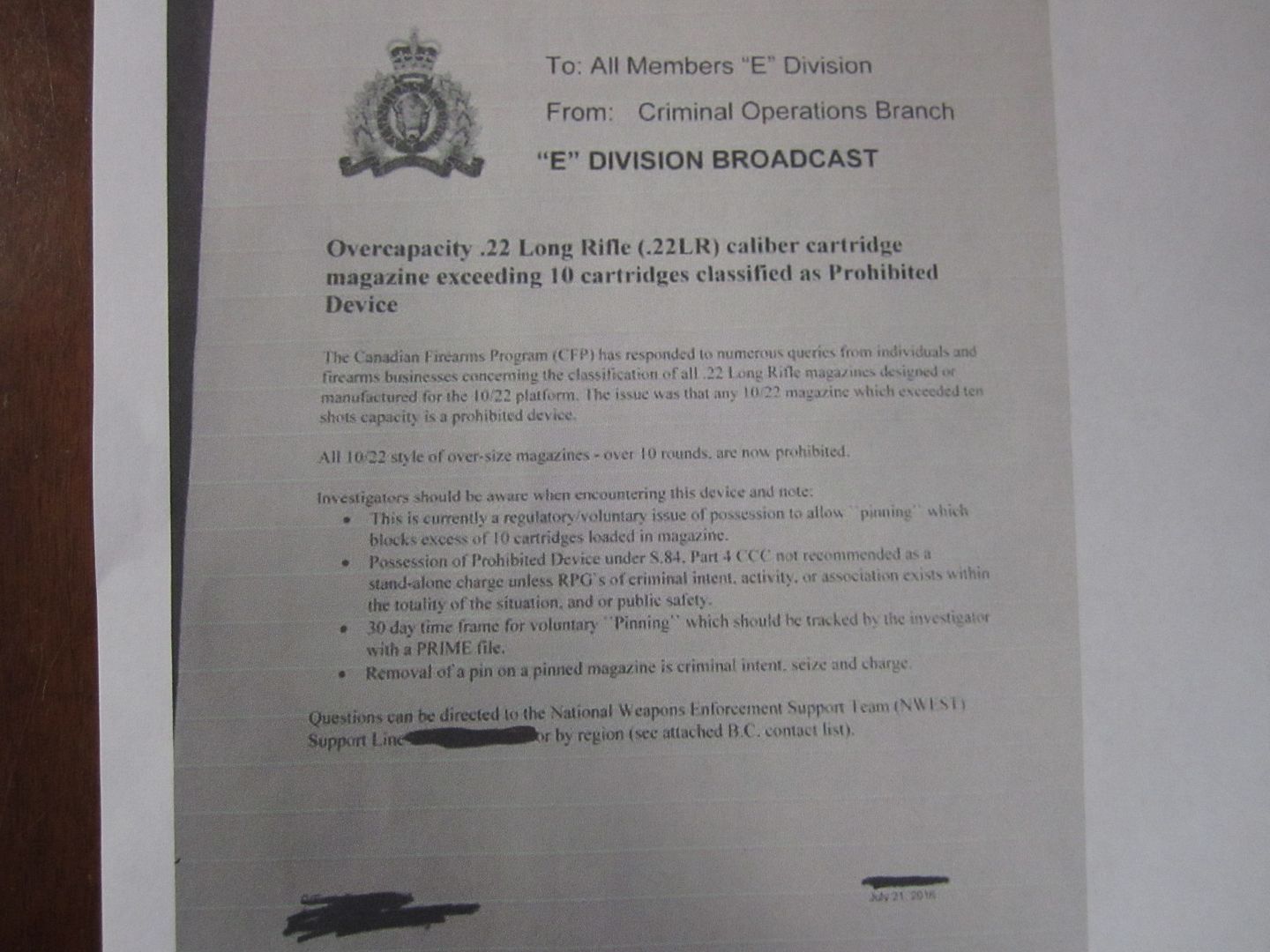 RCMP "E" Division Broadcast reguarding Ruger 10/22 rifle magazines.