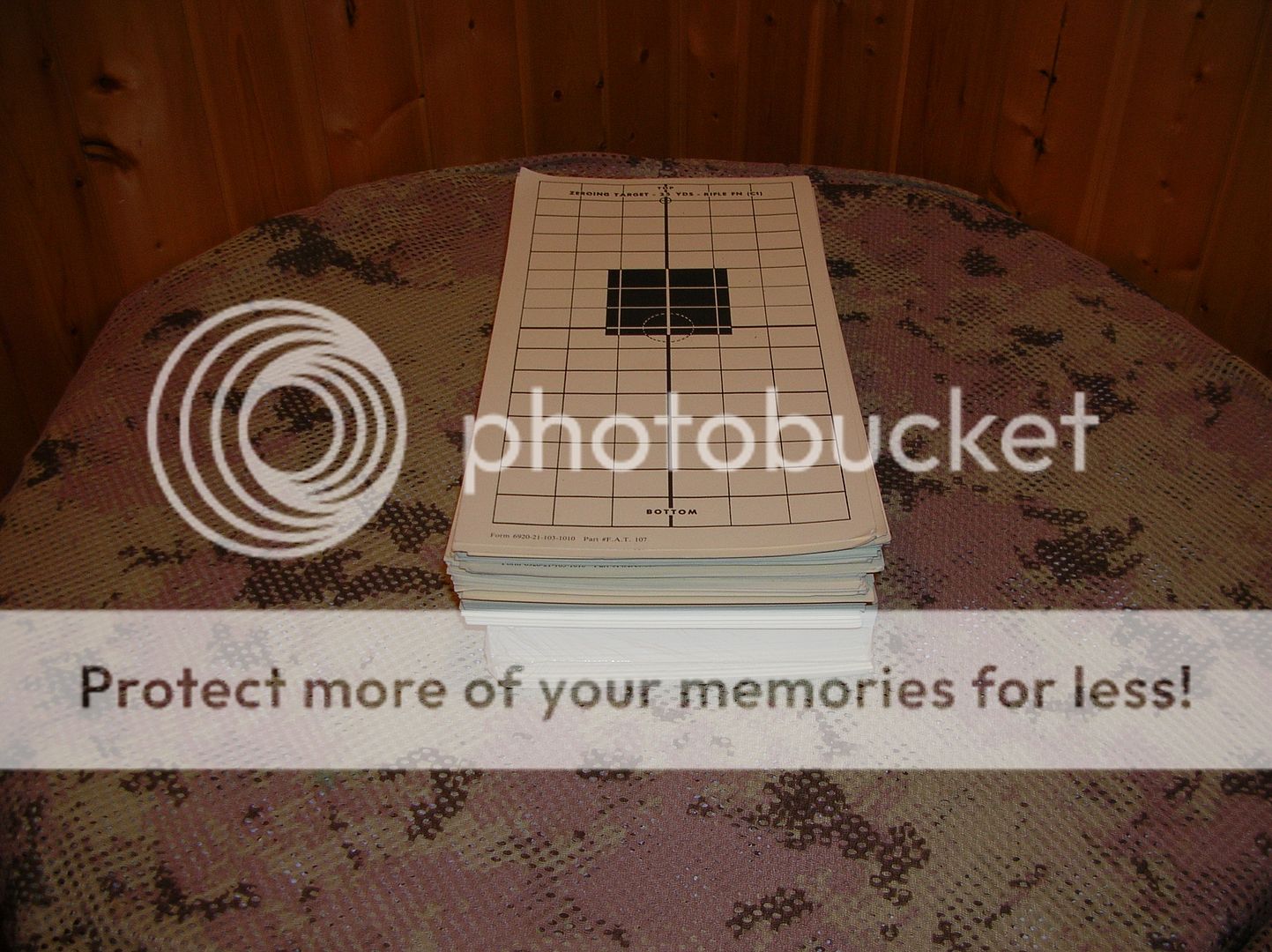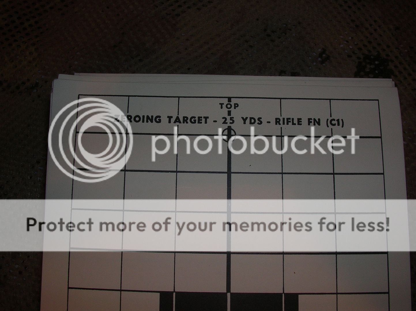 Looking to expand my collection of stuff for my C1A1 look-a-like. What I am looking for are examples of two (2) targets. The first is a ZEROING TARGET - 25 YDS - RIFLE FN (C1) NSN 6920-22-103-1010 and the other is FN C1A! 0.22 INCH CONVERSION TARGET FIG 11 - RAPID FIRE 1979 NSN 6920-21-881(?)-3410. Anyone know where I might find any of these targets?
