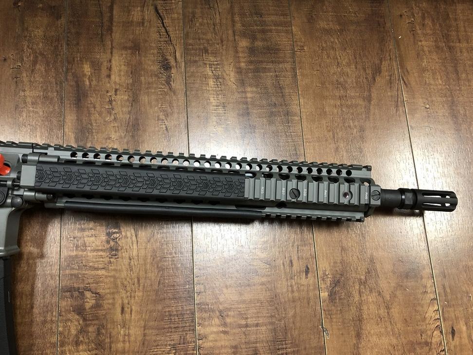 Daniel Defense M4A1 5.56mm Deep Woods 14.5"BBL This one has RIS II rail system, and soft touch hand guard covers, and soft touch cheek rest on both sides of stock.